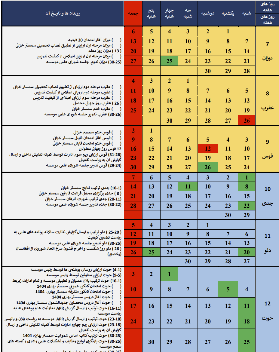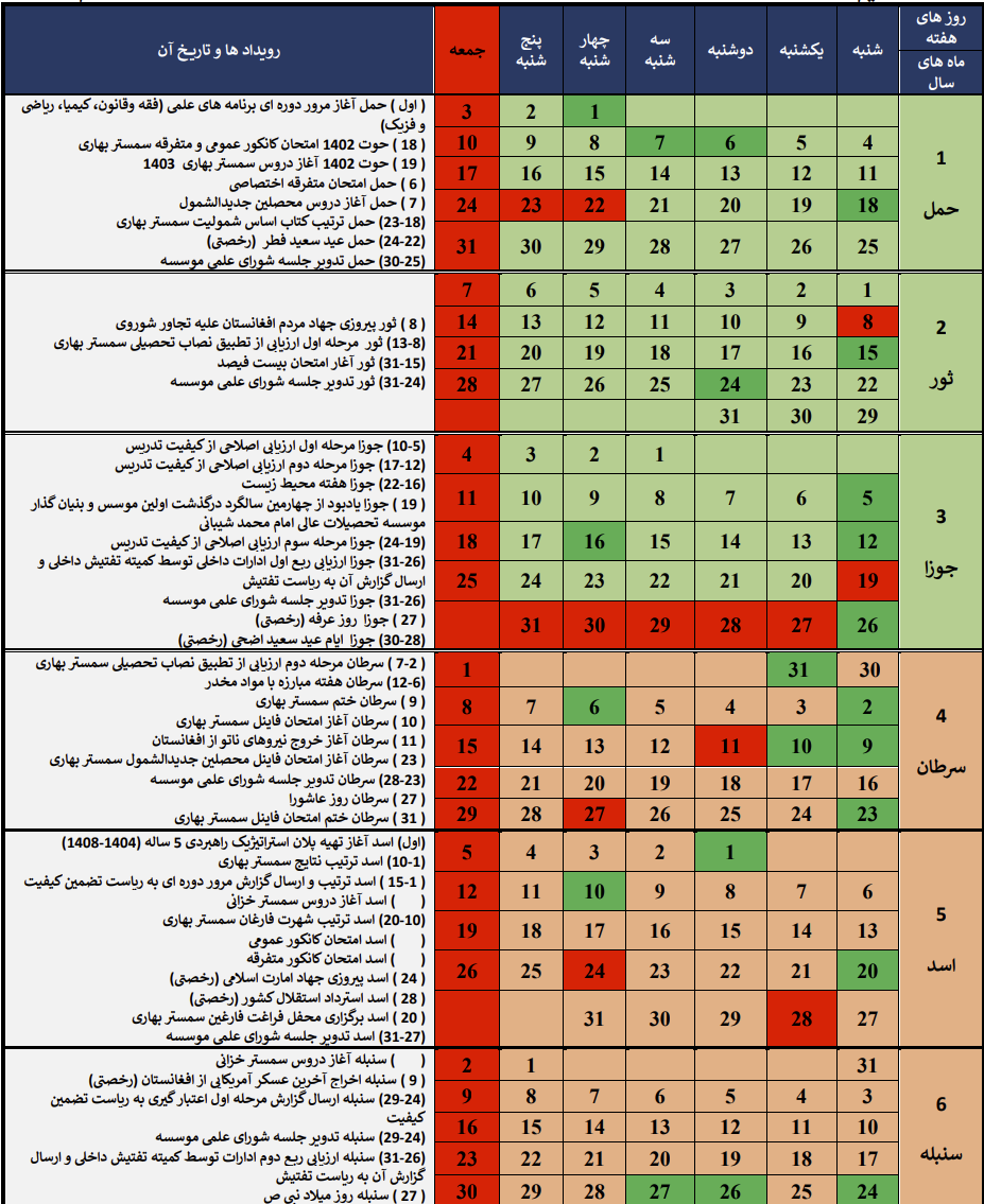 تقویم اکادمیک سال تحصییل 1403 ه.ش مطابق با 1446-1445 ه.ق و 2025-2024 م
